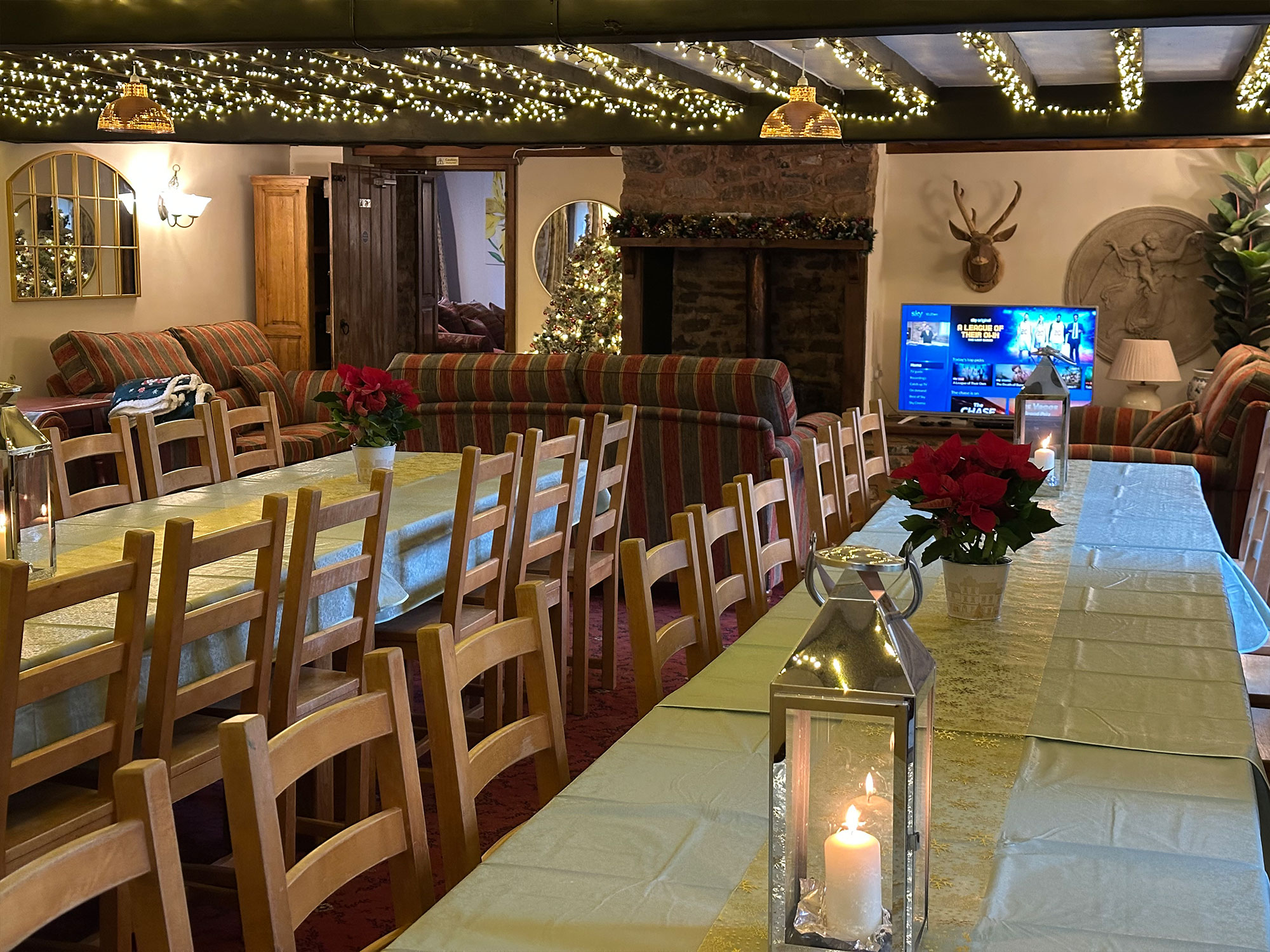 Duvale Barn can hold up to 44 people in 16 bedrooms. It has a kitchen with a Rayburn (Rayburn at an extra cost). There is a possibility of hiring two small bunkbed rooms if ever needed, which would allow your numbers to go up to 48 people in 18 bedrooms. A large front room with dining tables to seat 44 people, plus a further second lounge. A pool table room and three additional small kitchens and two additional small lounges. It has its own private garden with BBQ area. The BBQ hut will be available from November 2025, so please check at the time of your booking if it is available. The house is perfect for any occasion or get together.