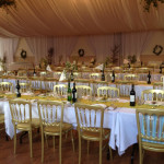 Duvale priory weddings hold a civil ceremony licence. Our large hall can hold a maximum of 130 people. Prices start at £16,000 for a two night wedding package, which includes the three houses for your accommodation and our hall for your wedding day. Within this price we set up the hall with chairs and tables - we can provide cutlery, crockery, glasses and table cloths at no extra cost. You may bring in outside caterers for a fee, or use caterers on our list. The bar is able to provide very reasonable drinks packages. The hall closes at 12.00 am on the wedding night.